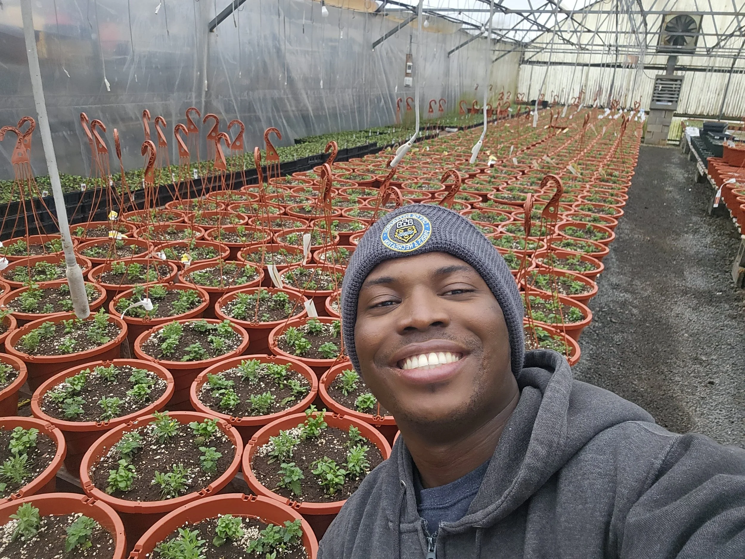 Bernard posing at a Farm High Tunnel. (Courtesy of Bernard Sekey)