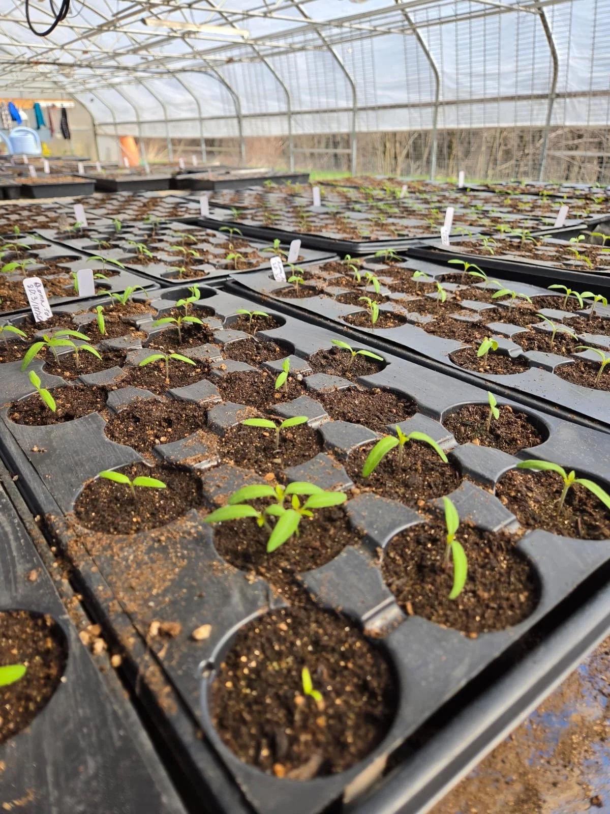 The farm is getting ready for another abundant and diverse growing season, and we’re so excited for everything to come. Our fields and greenhouse are filling up with strong, healthy starts that will soon be ready for gardens everywhere. This season features many of our favorite tomato varieties, including rich and flavorful Cherokee Purple, classic Roma, bright and dependable Moskvich, sweet Sunrise, and the striking Purple Bumblebee with its beautiful striped fruit. Whether you love slicing tomatoes for sandwiches, making sauce, or snacking straight from the vine, we have something for every garden and kitchen.